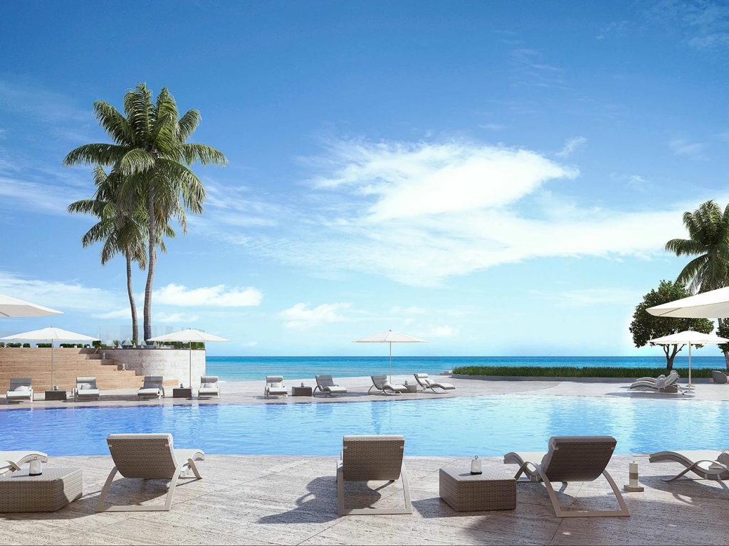 Residential interiors are modern and elegant yet truly relaxed with floor-to-ceiling windows offering incomparable views over countless miles of soft white sand and turquoise water. Spacious terraces create a seamless expansion of living space into the fresh air.