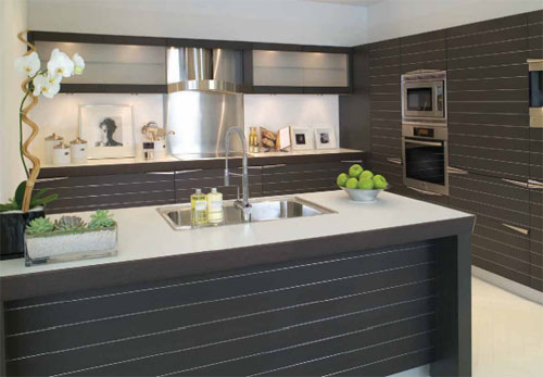 - Snaidero “Time” cabinetry, designed by Lucci e Orlandini in dark oak wood with stainless steel inserts